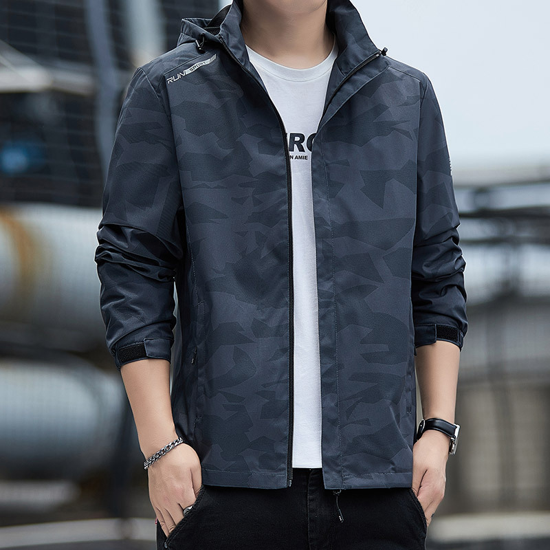 男性コートと帽子のジャケット春と秋の新型カジュアルな突撃服のファッション韓国版迷彩風衣メーカー直販