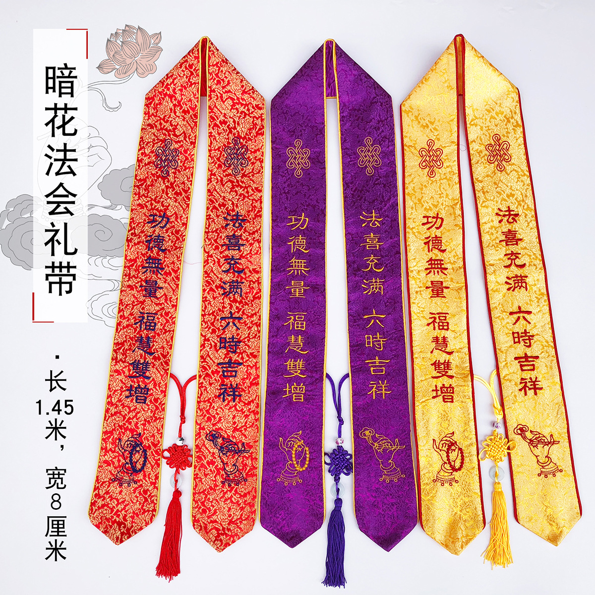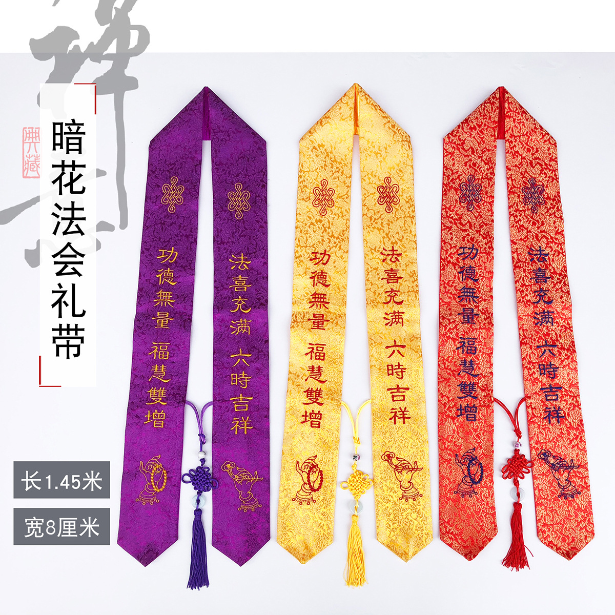 仏具の器の刺繍品の寺院の活動のリボンの法会のリボンのリボンはvipの暗い花の材料の2色の法会の礼帯を持ちます。