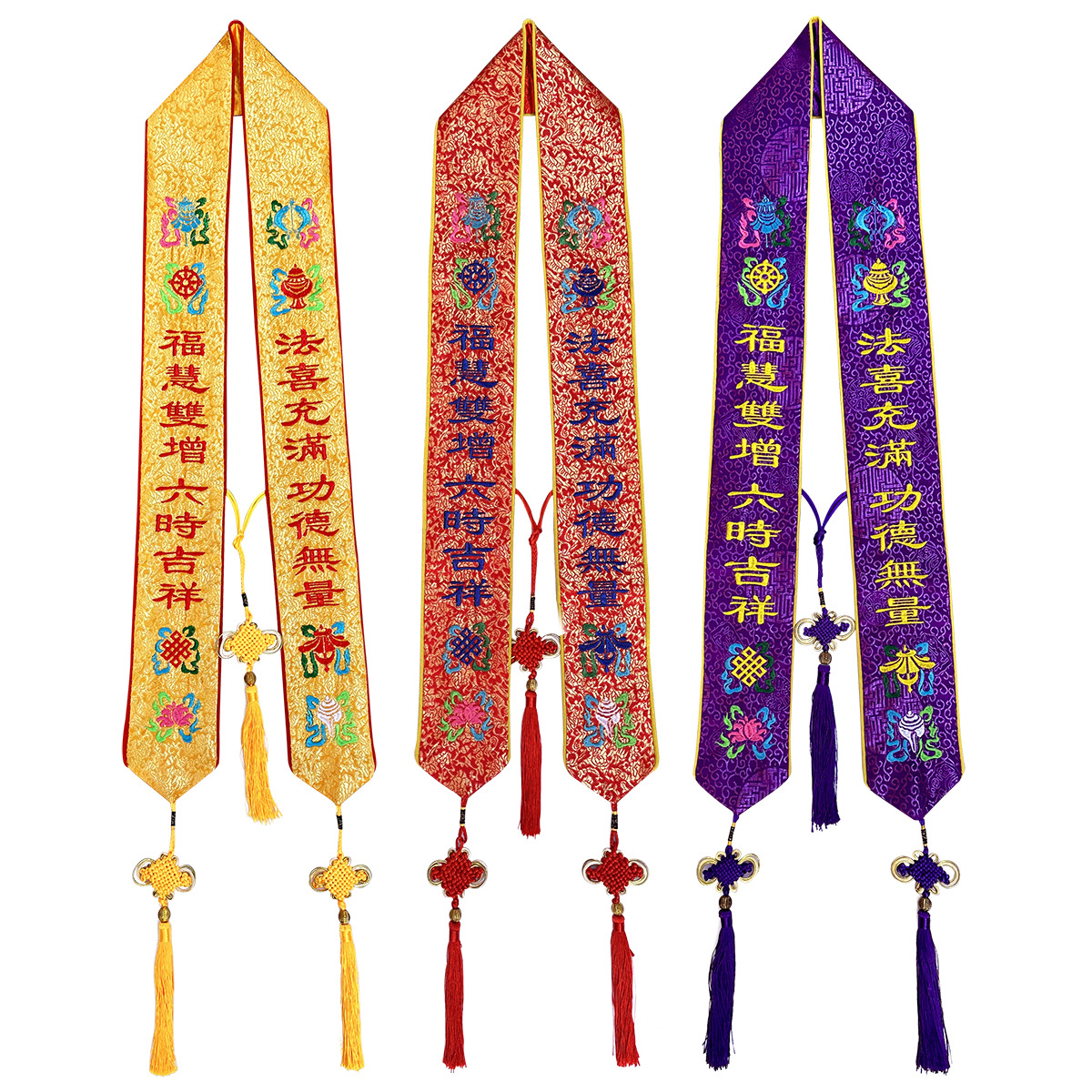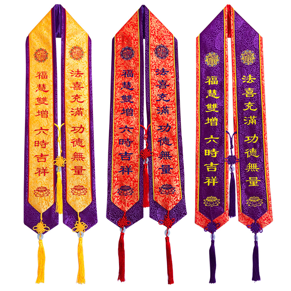 仏具用品の法器の刺繍品の寺院の活動のリボンのリボンのリボンのリボンの願いは貴賓の暗い花の生地を持って首の礼帯を掛けます。