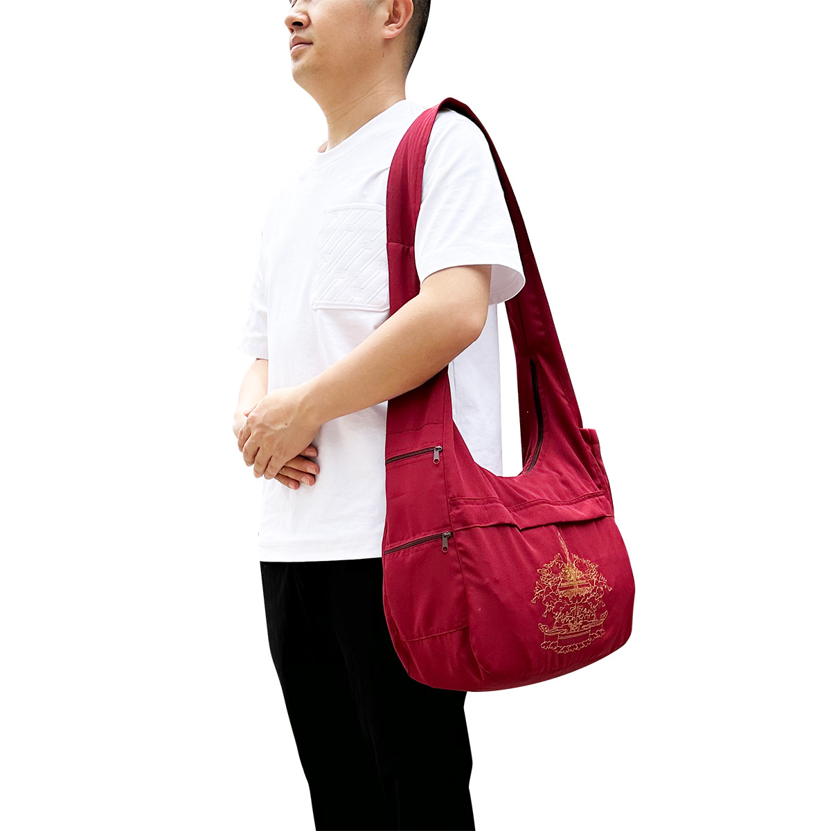 仏具禅修袋僧包僧袋居士朝山袋羅漢袋平織り綿布月形袋蔵赤色密宗包