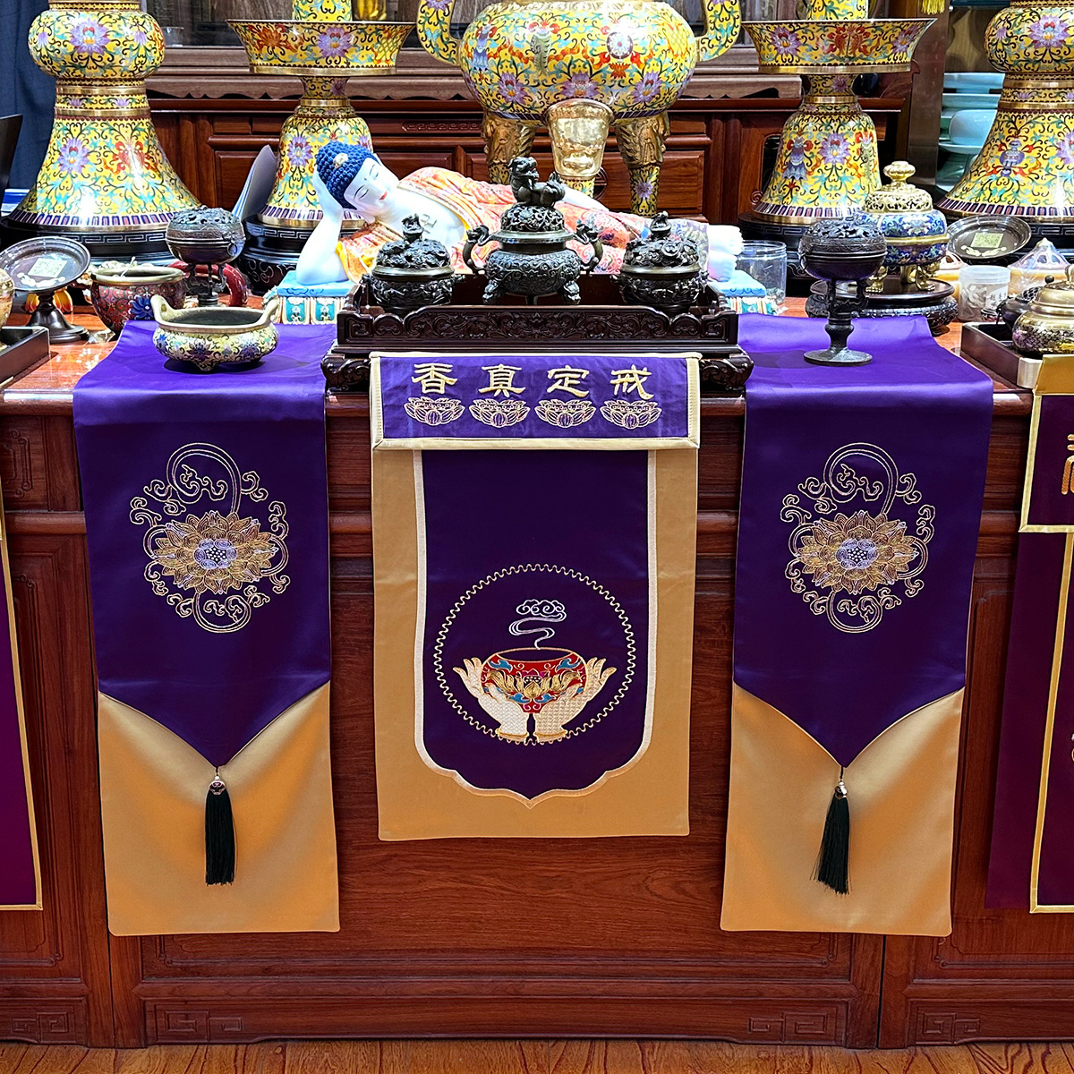 仏具仏堂仏壇トレー香炉供具拝敷き布芸装飾刺繍リング真香布テーブル旗セット