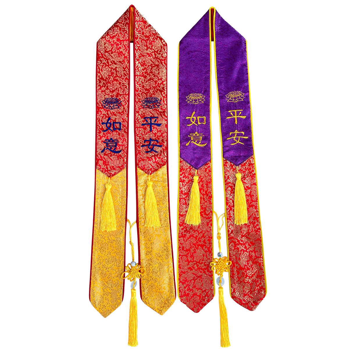 仏具の法器の寺院の仏壇の用品は願い事を持って貴賓の暗い花の布の2色の新型の法会の礼帯のリボンを持ちます。