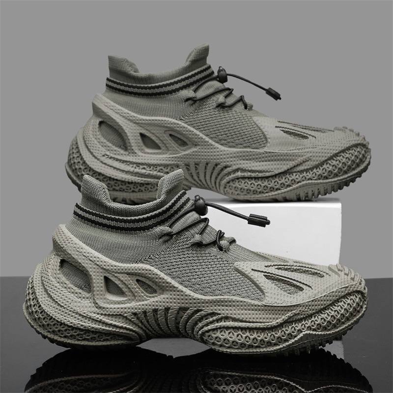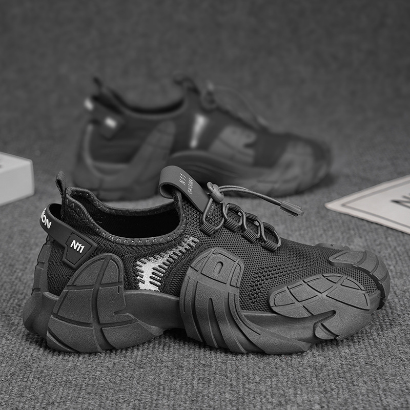 メンズシューズ 2025 夏人気フライ織り通気性メッシュスポーツお父さん靴ティーンエイジャー弾性バンドスポーツソックス靴