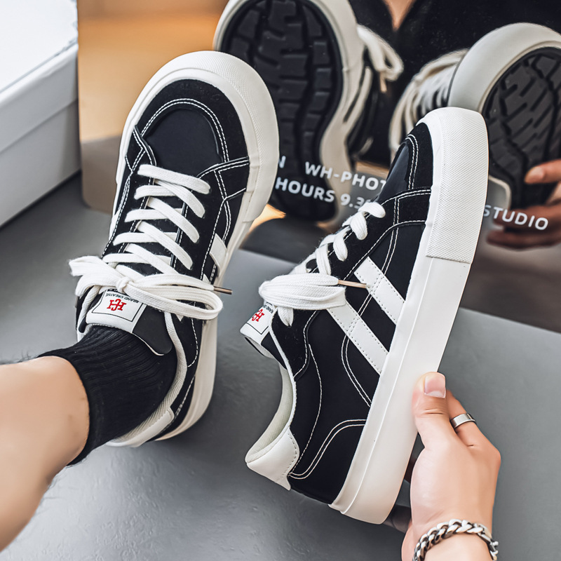 メンズスニーカー 2025 新しい夏のスポーツとレジャー多用途レトロトレンディな厚底耐摩耗性メンズロートップキャンバスシューズ