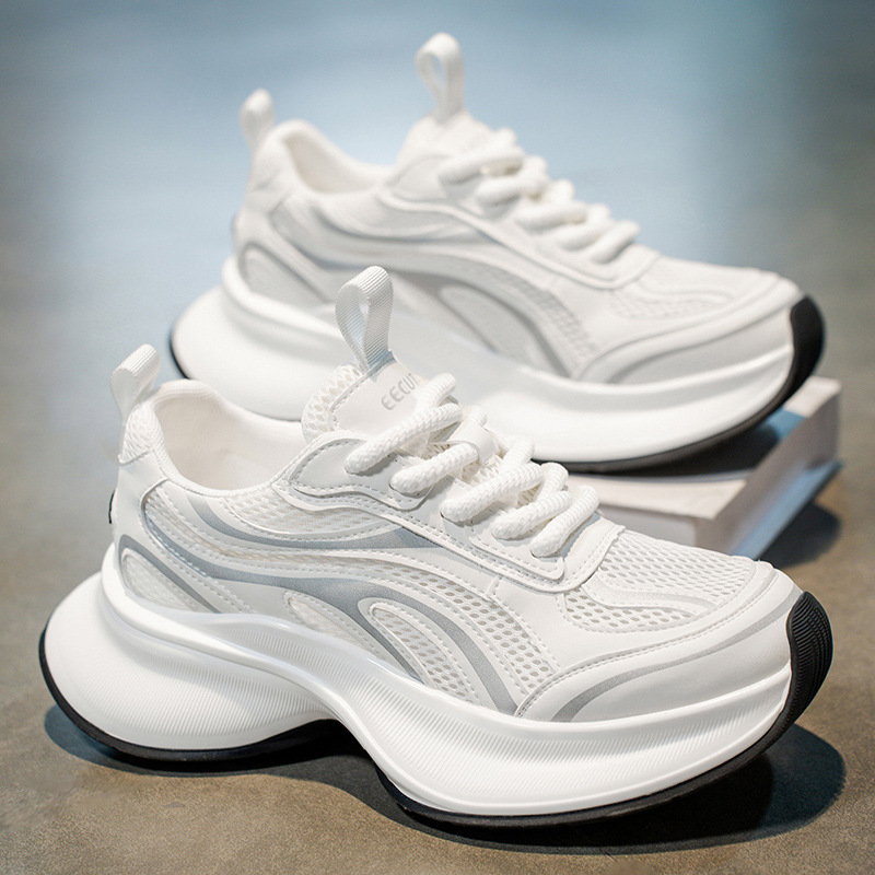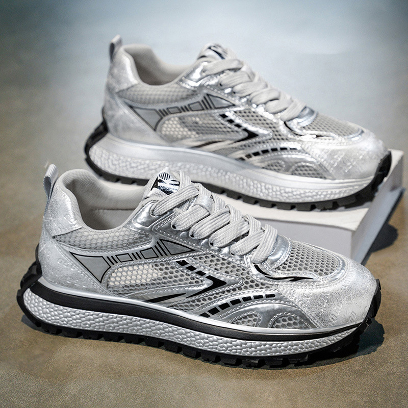 夏の新しいメッシュシューズ、通気性、多用途、パーソナライズされたファッション、厚底、身長を伸ばす紳士靴、若者のストリート写真、お父さん靴