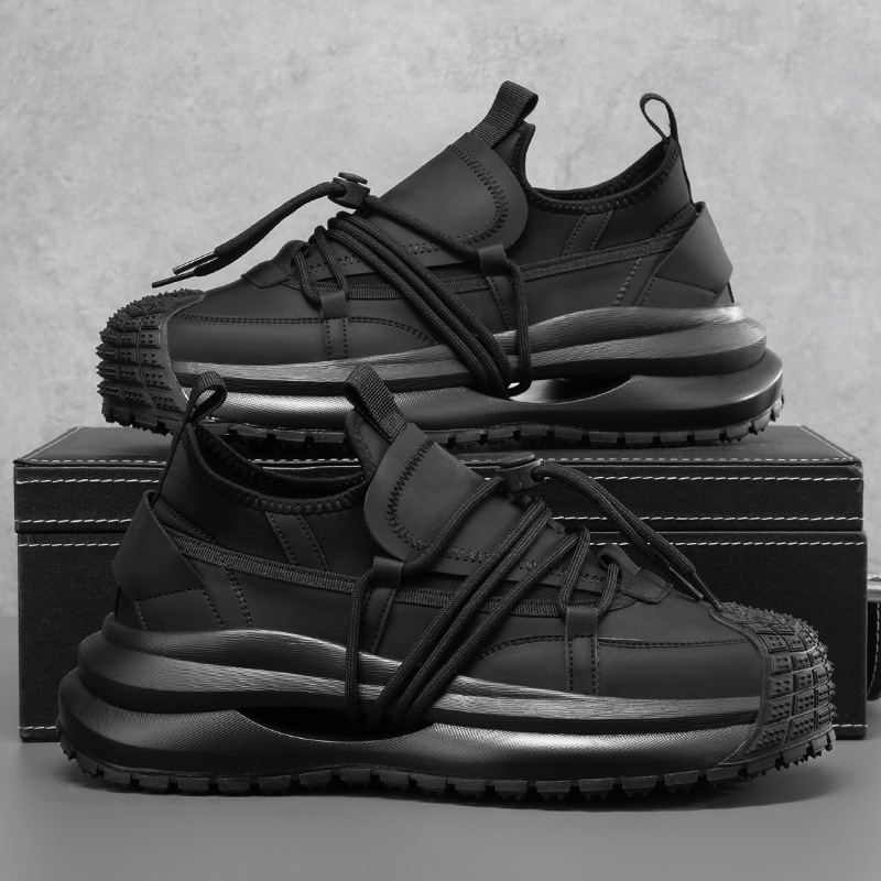 2025年新作厚底高めダッドシューズ、ソフトソール、快適でトレンディなタイヤソールスニーカー、韓国風カジュアルブラックシューズ