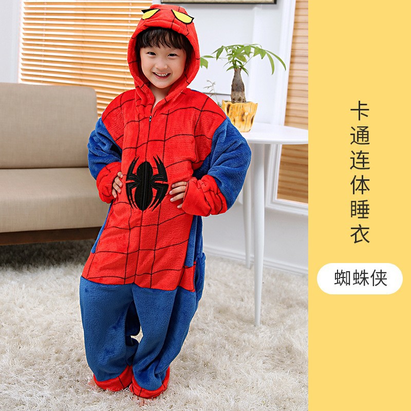 メーカー卸売スパイダーマン可愛いフランネルパジャマ子供男女動物漫画親子服