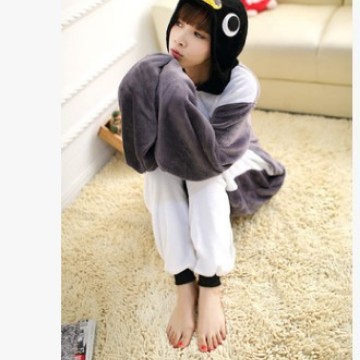 外国貿易の卸売冬モデルの厚いかわいい漫画の灰色のペンギンの連体のパジャマのフランネルの男女のカップルの部屋の服