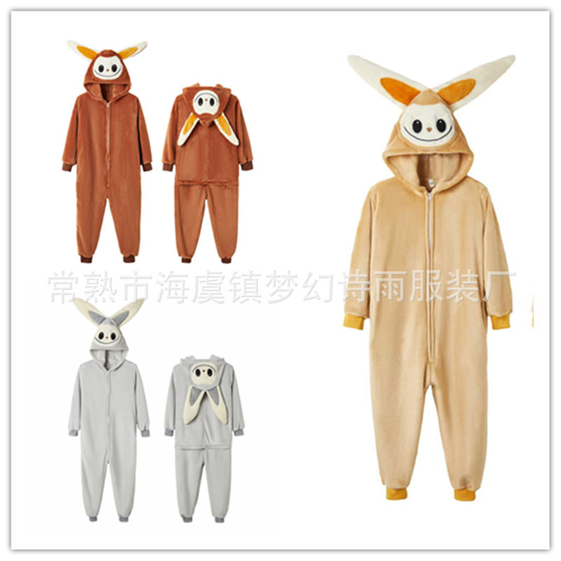 メーカー卸売 三眼怪牛 ジェネシスビースト 男女兼用 漫画風動物 ピンクのウサギ フランネル ホームウェア ワンピースパジャマ