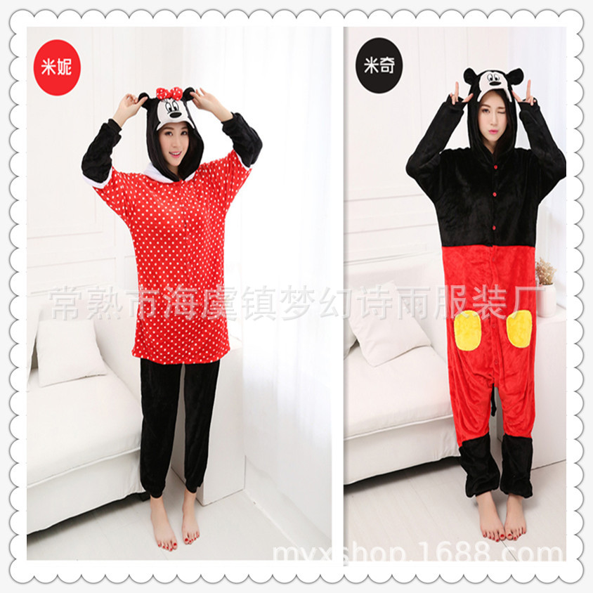 子供のクマビッグカウチーズ猫トトロ漫画ワンピースパジャマフランネルレッド牛男性と女性のカップルホーム服