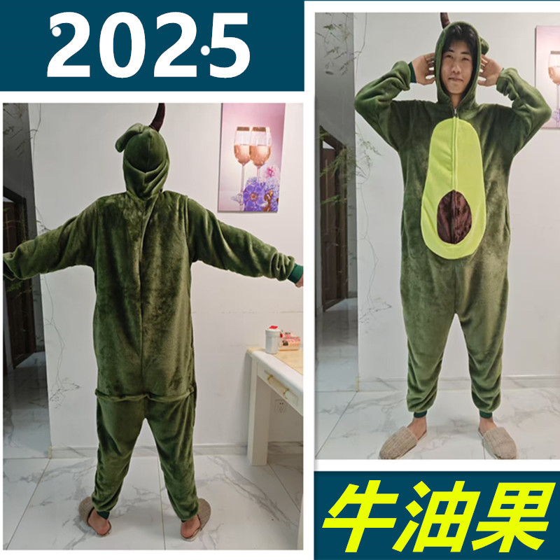 外国貿易メーカー卸売ネザーガーフィールドアボカド漫画動物フランネルワンピースパジャマ男性と女性のホーム服