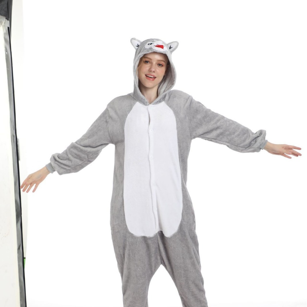 卸売りのハリネズミのアニメの新型の雪狼のオオカミのフランネルの男女のカップルの部屋の服の連体のパジャマ