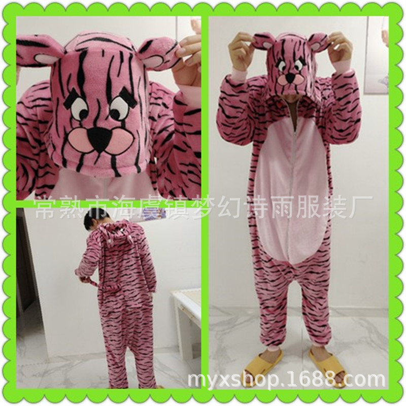 新しい秋冬のメーカーは男女のフランネルの跳虎の漫画の動物のワンピースのパジャマの男女の部屋の服を卸売りします。