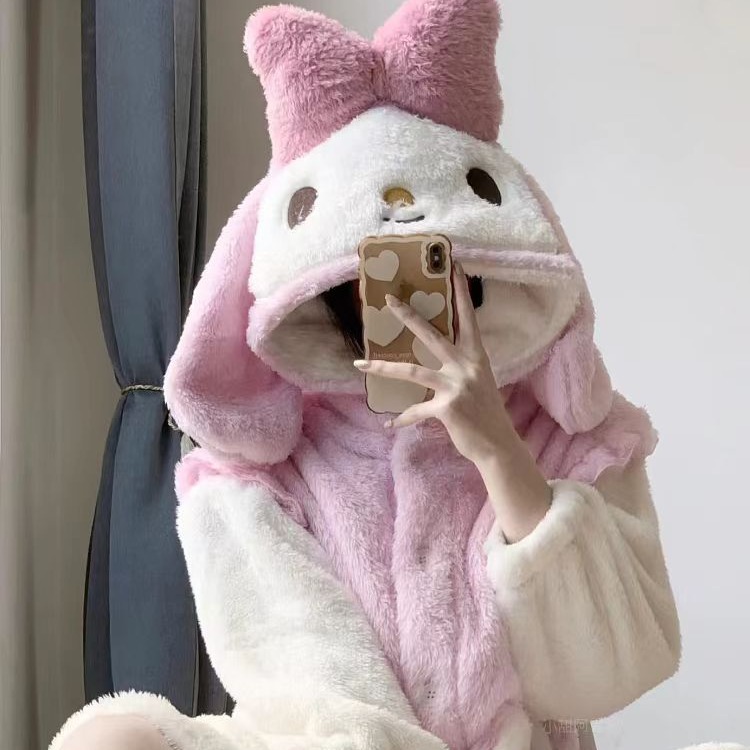 秋冬のアニメのパジャマは、ベルベットの美楽兎サンゴのベルベットの女の子の家の服のパジャマのバスローブを厚くした