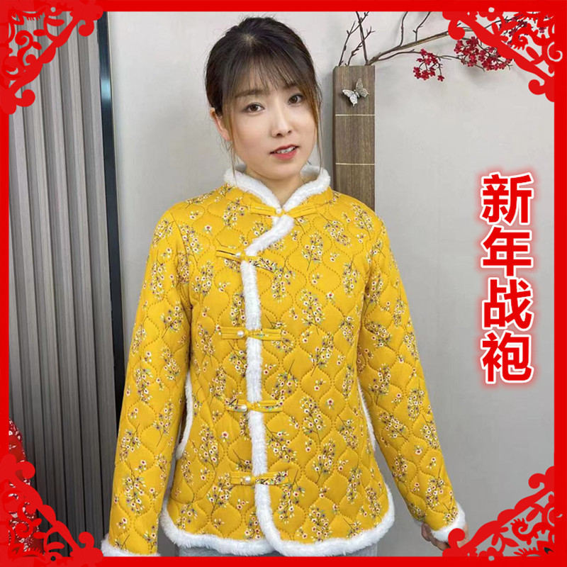 冬の復古中国風網赤外線は東北の砕花綿服を着て新年服を着ます。