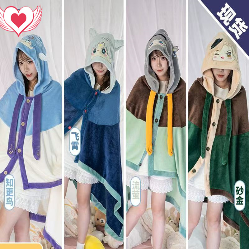 フニーナ 女の子用流光ケープ マント ブランケット 漫画風昼寝ブランケット 黒猫小埋ケープ フランネルエアコンブランケット
