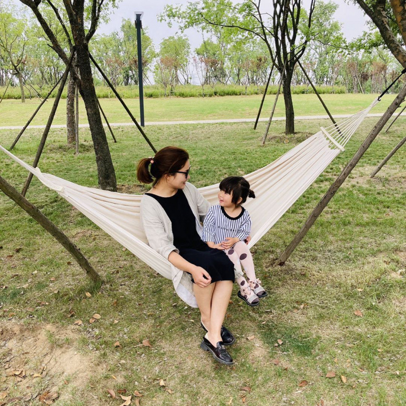 大人と子供のための屋外ホワイトダブル横転防止ハンモック厚みのあるキャンバススイングポータブルハンモックキャンプで横になって寝ることができます