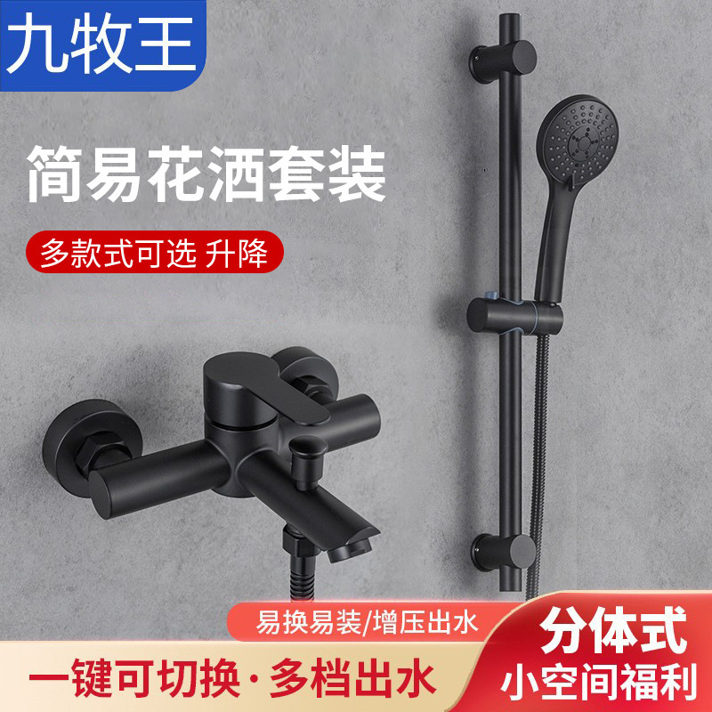 Jiu᷂Muwang 全銅製シンプルブラックシャワーセット ステンレス製壁掛けシャワー シャンプー 浴室バス リフト付き