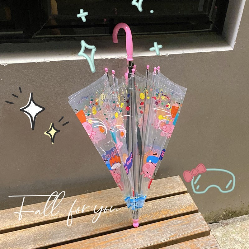 子供の漫画の子豚のページの傘の女子学生のかわいい透明な長い柄の傘のピンクのユニコーンは自動的に傘を厚くします。