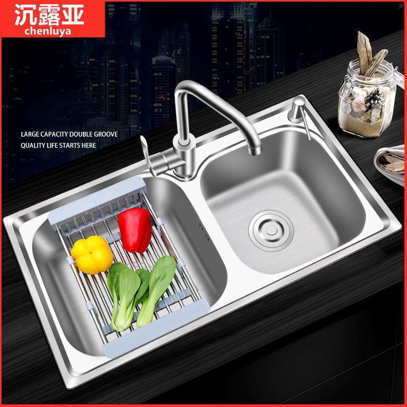 304 ステンレス鋼シンクダブルスロットパッケージ一体成型肥厚手作りシンク家庭用シングルシンクシンク