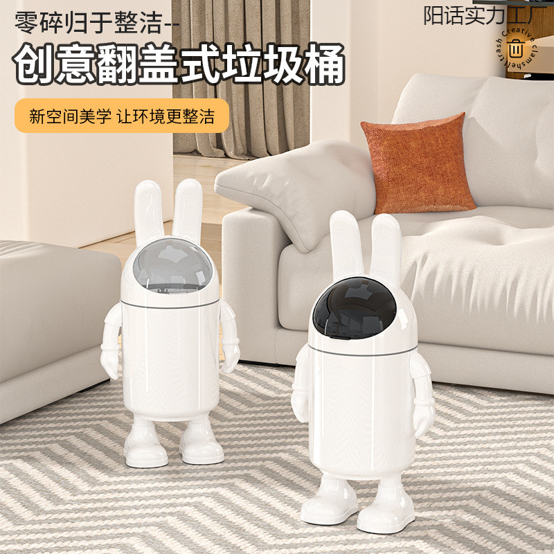 新しいスタイルのゴミ箱クリエイティブリビングルームホーム漫画高価値バスルームキッチン寝室大容量フリップカバー付き