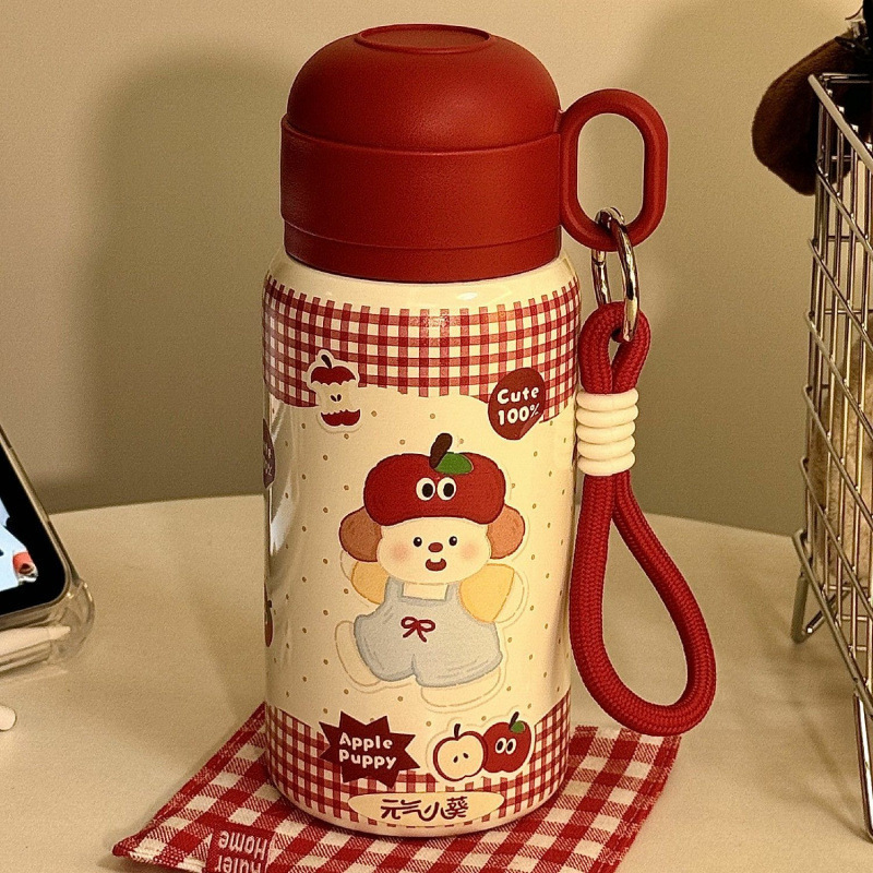 红格子狗狗三饮保温杯ins女生316不锈钢便学生携可爱儿童水杯