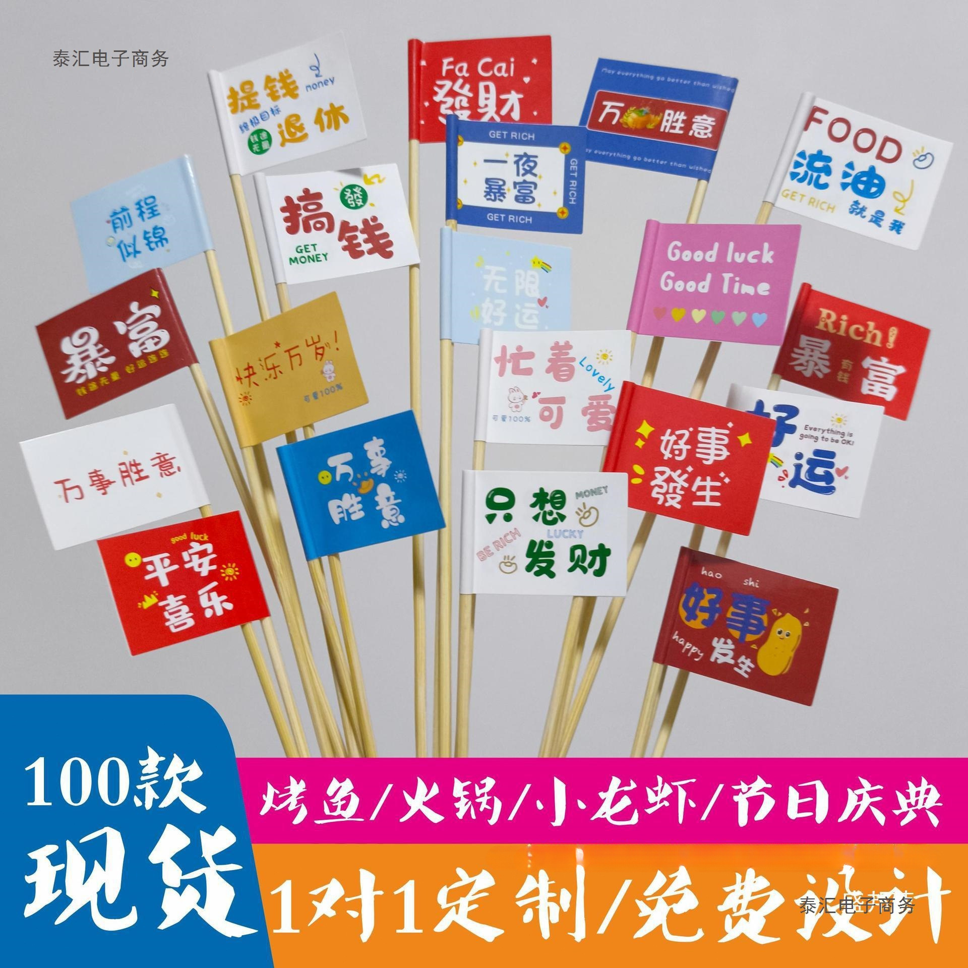 工場直売2024年新型爪楊枝露店小挿旗ケーキ甜品ハンバーガー料理商用小旗