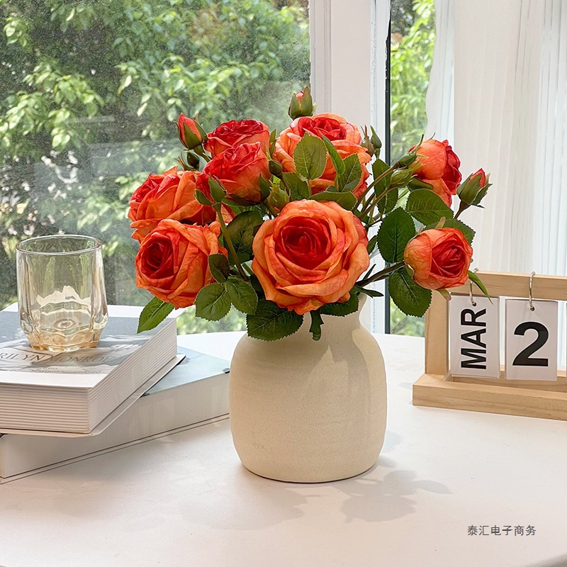 バラの模造花の造花の置物は軽くて豪華なハイエンドの客間の食卓の装飾品の花芸の置物の花束の写真撮影の道具を設けます。