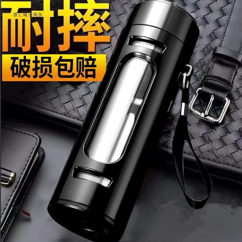 超大型グラス大容量二重耐高温防止カップ男携帯広告カップ車にお茶を入れるコップ