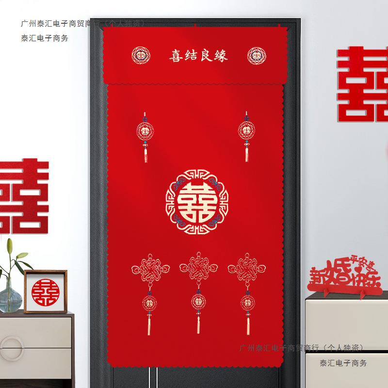 結婚のカーテンの結婚の部屋の赤い寝室は中国式のお祝いの新しい部屋を配置して結婚の喜びの字の刺繍を飾ります。