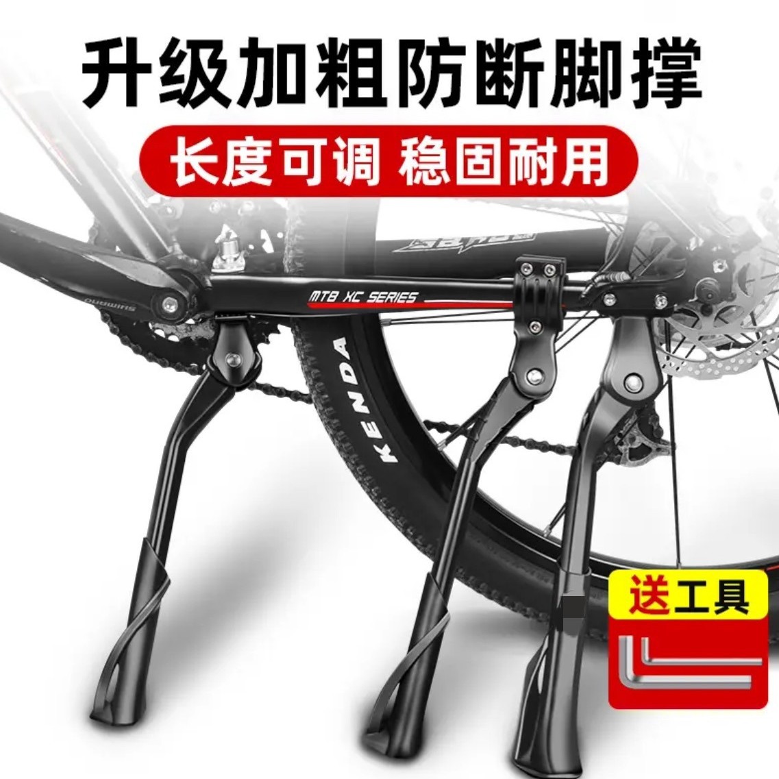 マウンテンバイク用リチウム電池車用アルミ合金サイドスタンド、二穴調整可能、厚く強化されたシングルスタンド