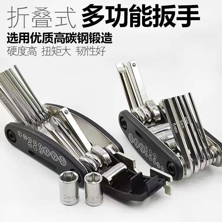 多機能レンチ自転車組み合わせ折りたたみ修理ツールミニマウンテンバイク修理理炭素鋼レンチ