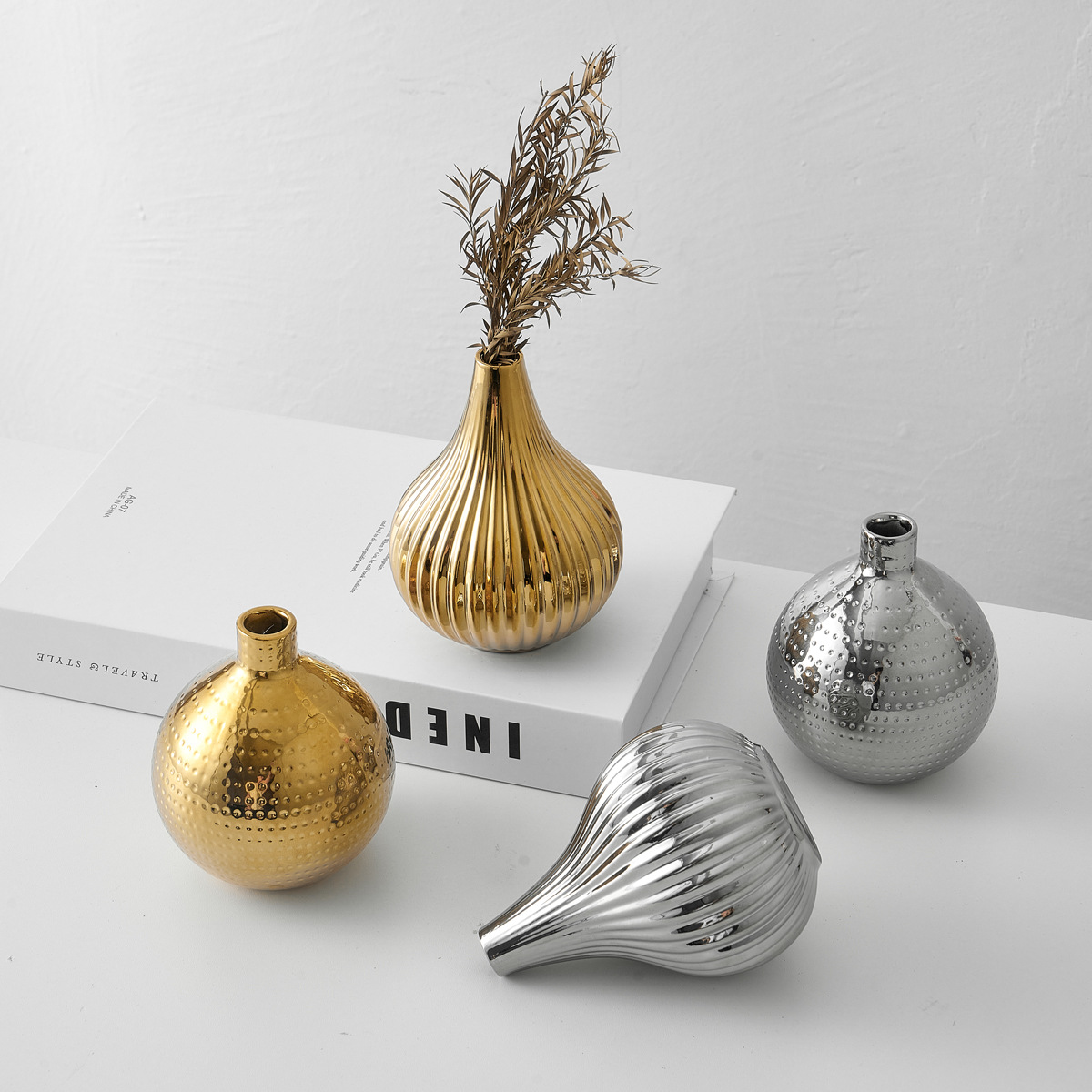 現代シンプルで贅沢なアイデアメッキ金色陶磁器花瓶家庭装飾クリスマス生け花器芸術花瓶