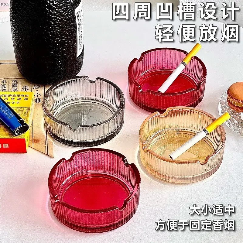 現代のシンプルなアイデアの軽い豪華なタバコの皿の客間の家庭用ガラスの縦の紋様の透明な灰皿のホテルの灰皿の卸売り
