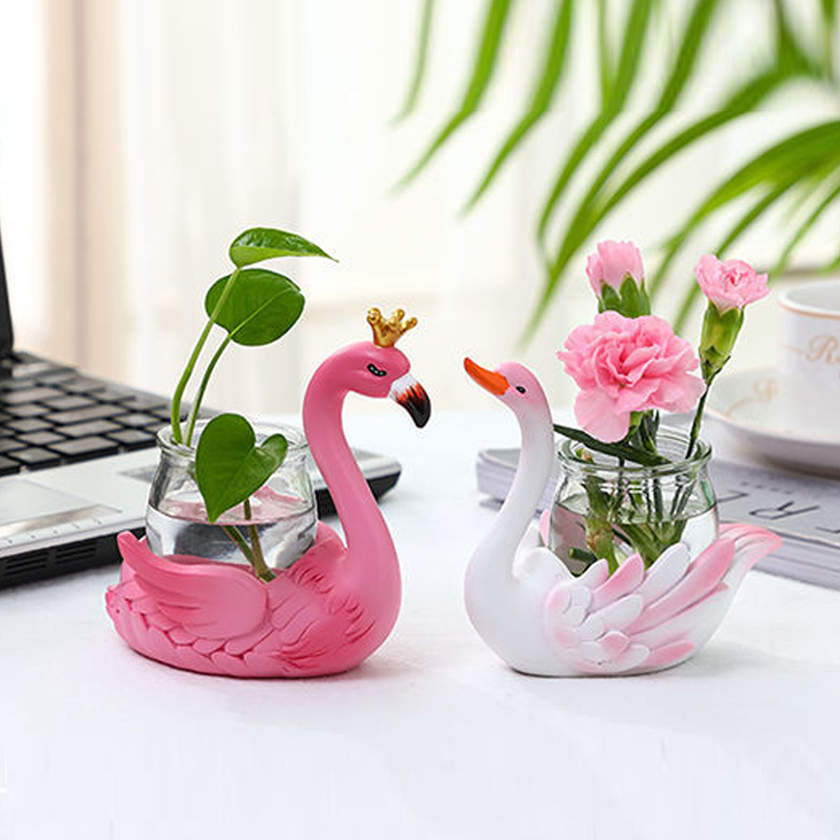 かわいい樹脂白鳥花瓶置物緑羅水培小植木鉢オフィス客間室内装飾品水容器