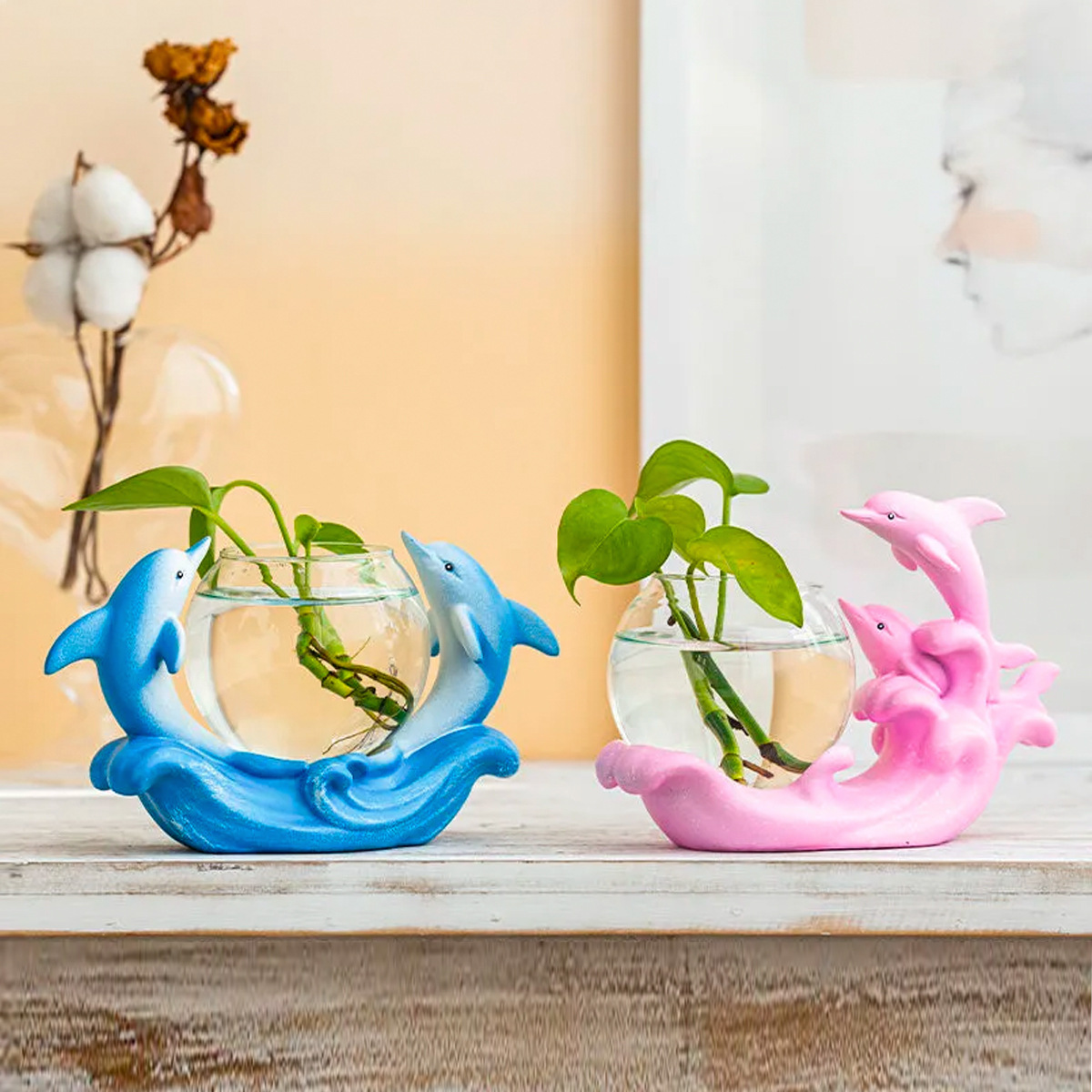 クリエイティブシンプルなイルカ水耕栽培ガラス花瓶家庭装飾客間デスクトップ緑羅植物植木鉢クロスボーダー熱売