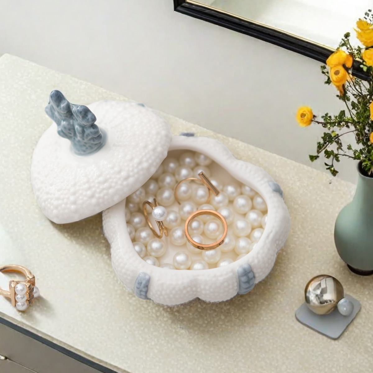 北欧の白い海星蓋付きジュエリー収納ケース化粧台装飾創意陶磁器サンゴジュエリー収納クロスボーダー