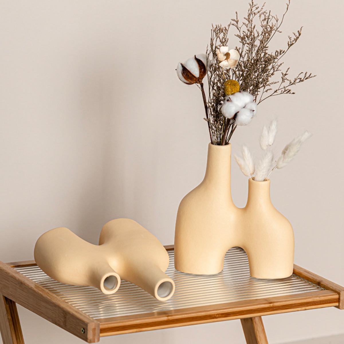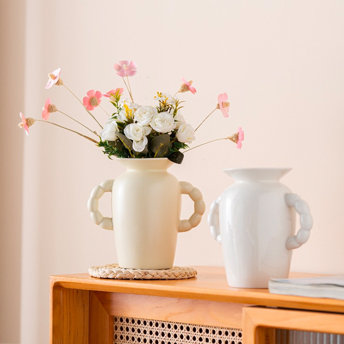 北欧クリーム色バイノーラルセラミック花瓶リビングルーム装飾置物モダンシンプルアートホーム花挿し木生け花器