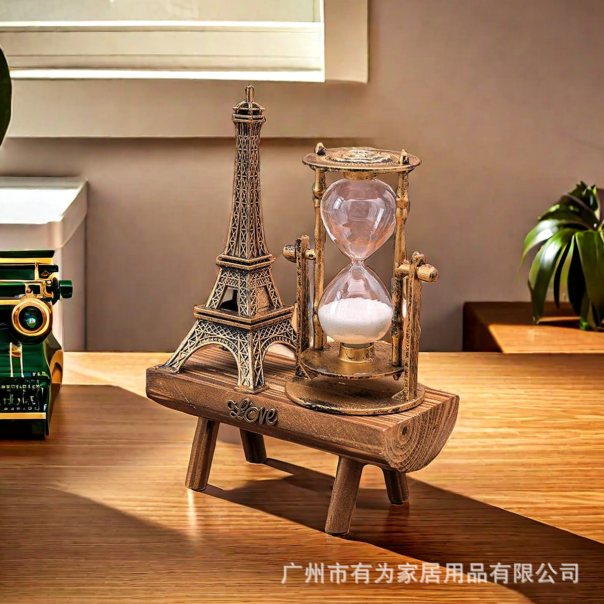 レトロ創意タワー砂時計オフィスデスクトップタイマーリビングルーム書斎置物木製砂時計ホーム装飾
