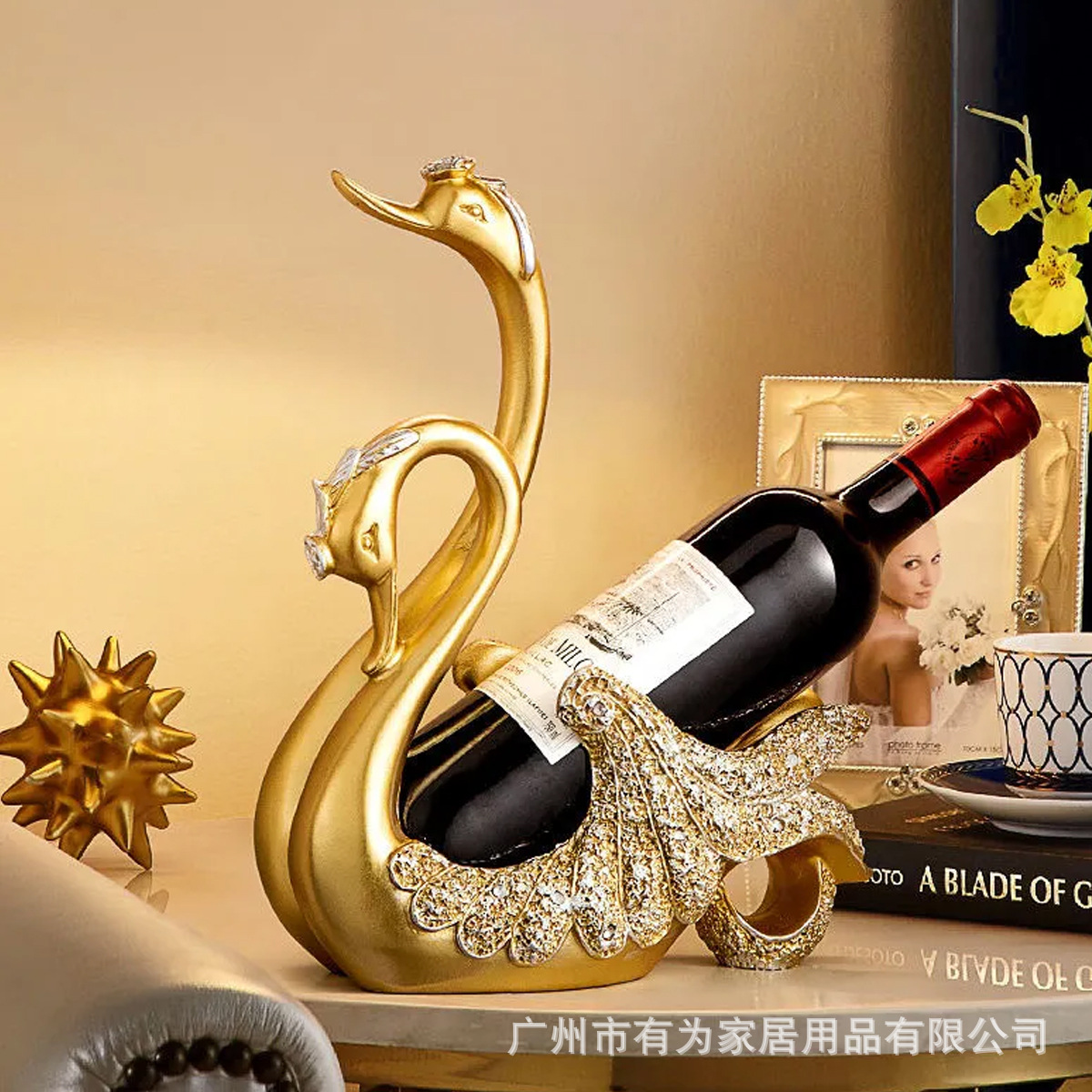 現代の軽い豪華な金色の白鳥の赤い酒の棚の客間の玄関の酒の箱は創意の家庭の装飾品の置物を飾っています。