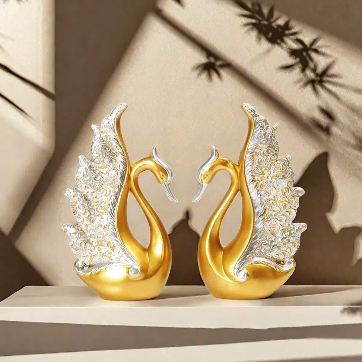 軽くて豪華な金色のカップルの白鳥樹脂の置物の家庭装飾の現代の客間の青い白鳥のテレビの棚の置物