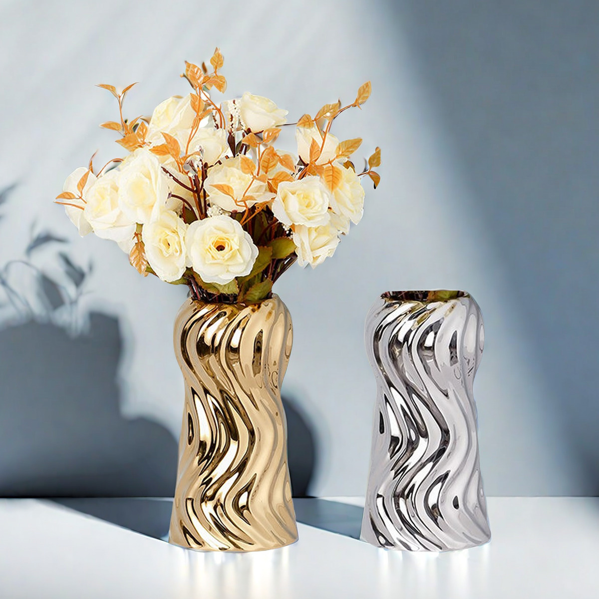 現代の軽い豪華なメッキの金色の陶磁器の花瓶の家庭の装飾の良いものの客間のデスクトップの生け花器の装飾品の置物