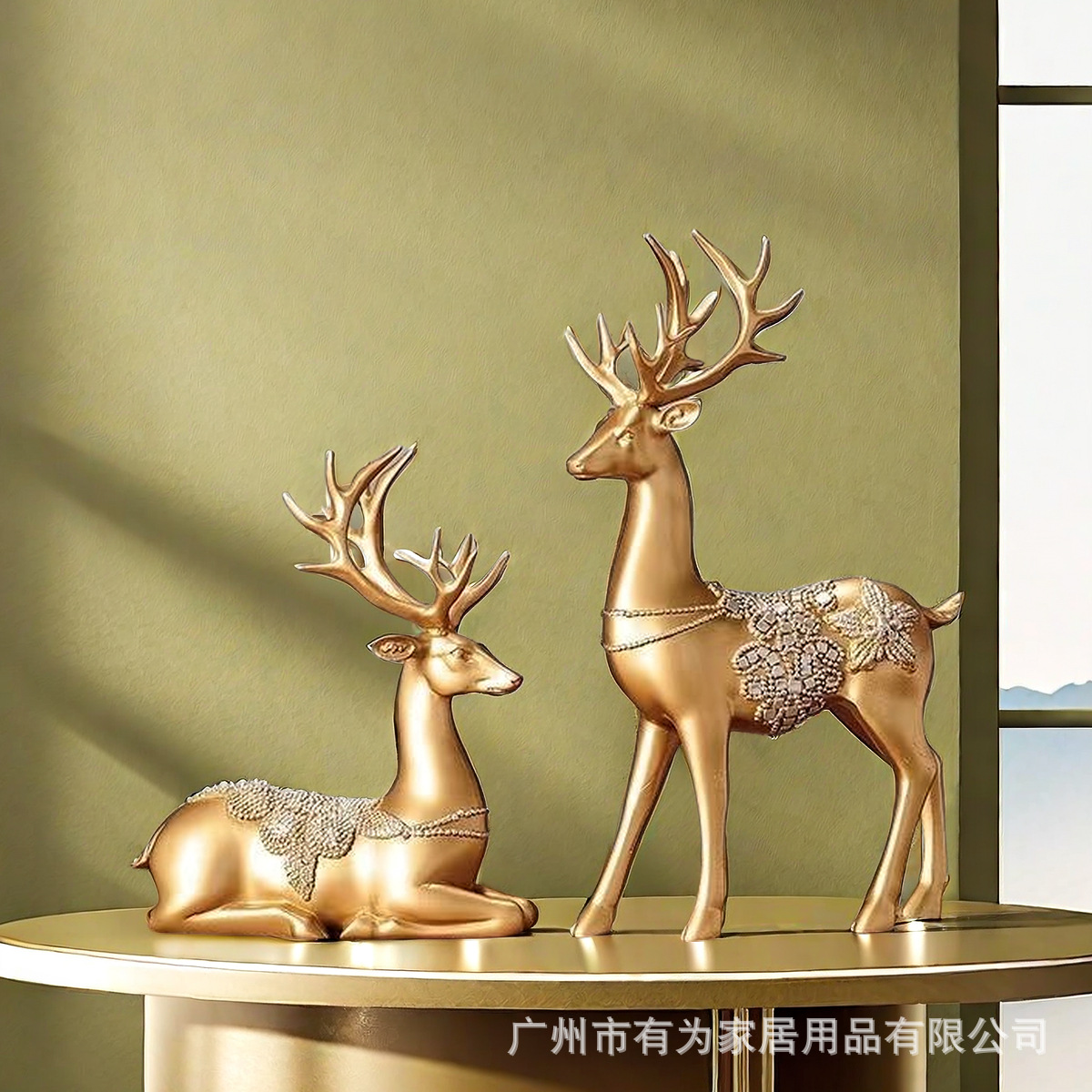 創意的な金色のカップルのニホンジカの客間のデスクトップの芸術の動物の置物の北欧の家庭のアクセサリの事務室の飾り物