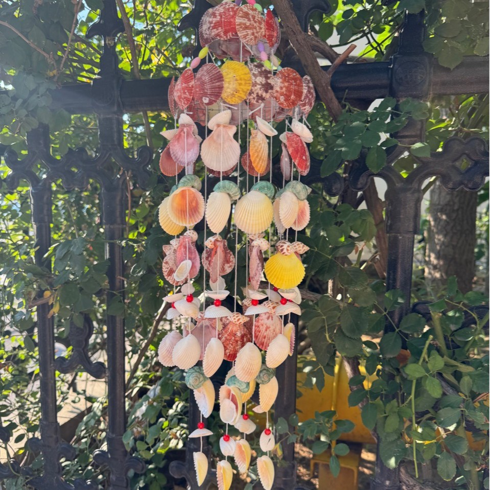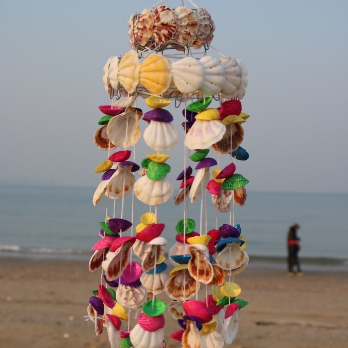 七彩小宮灯貝殻風鈴45センチ高さ天然貝殻海螺工芸品多色混紡