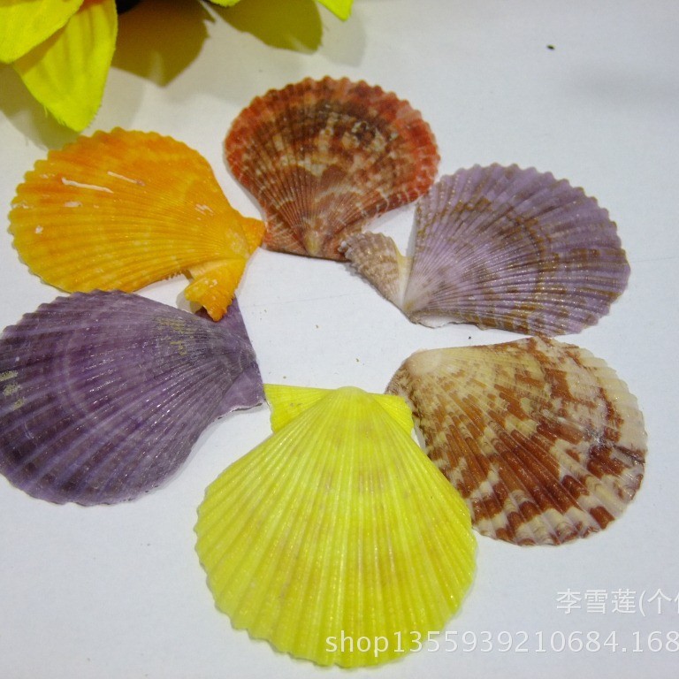 直径4 ~ 5センチ天然七彩深海扇貝殻原色壁に地中海水槽の家庭装飾を貼っている