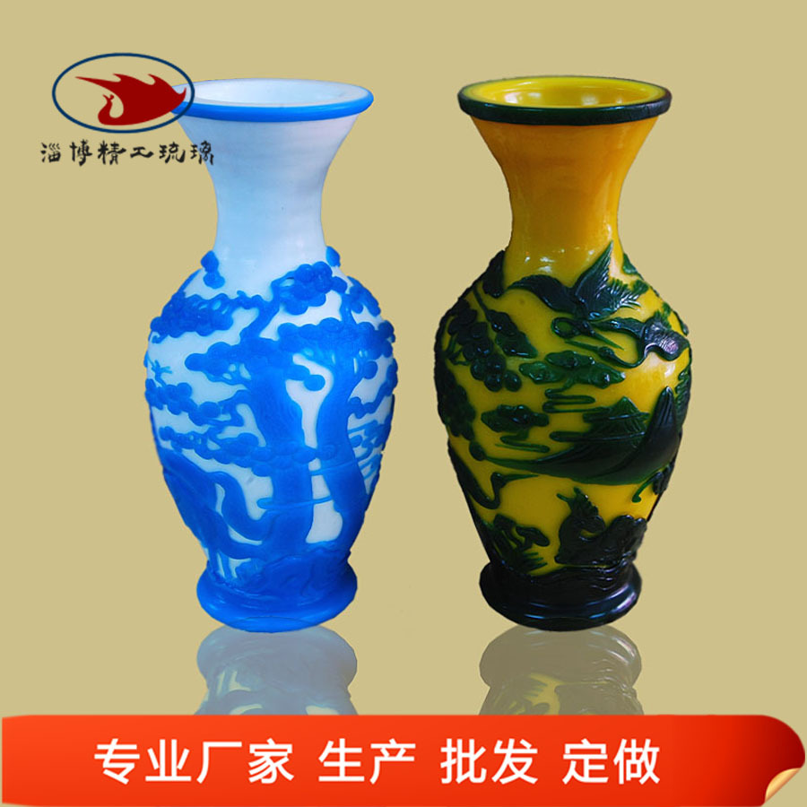 '淄博博山老瑠璃名貴色釉薬彫刻花瓶逸品瑠璃