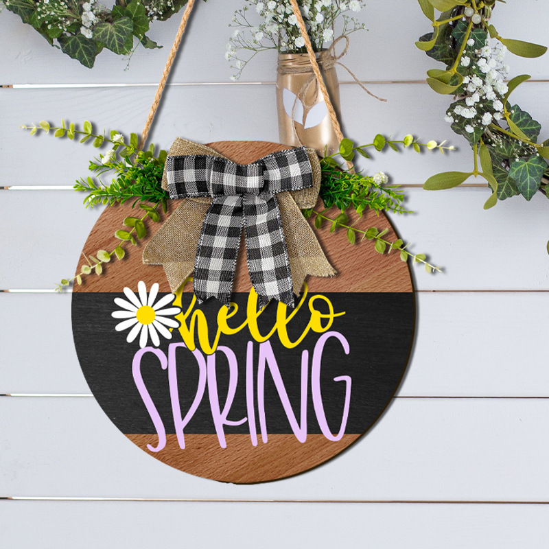 クロスボーダー英語版春の到来木製装飾品家庭の入り口の標識立札に蝶結び付き緑植