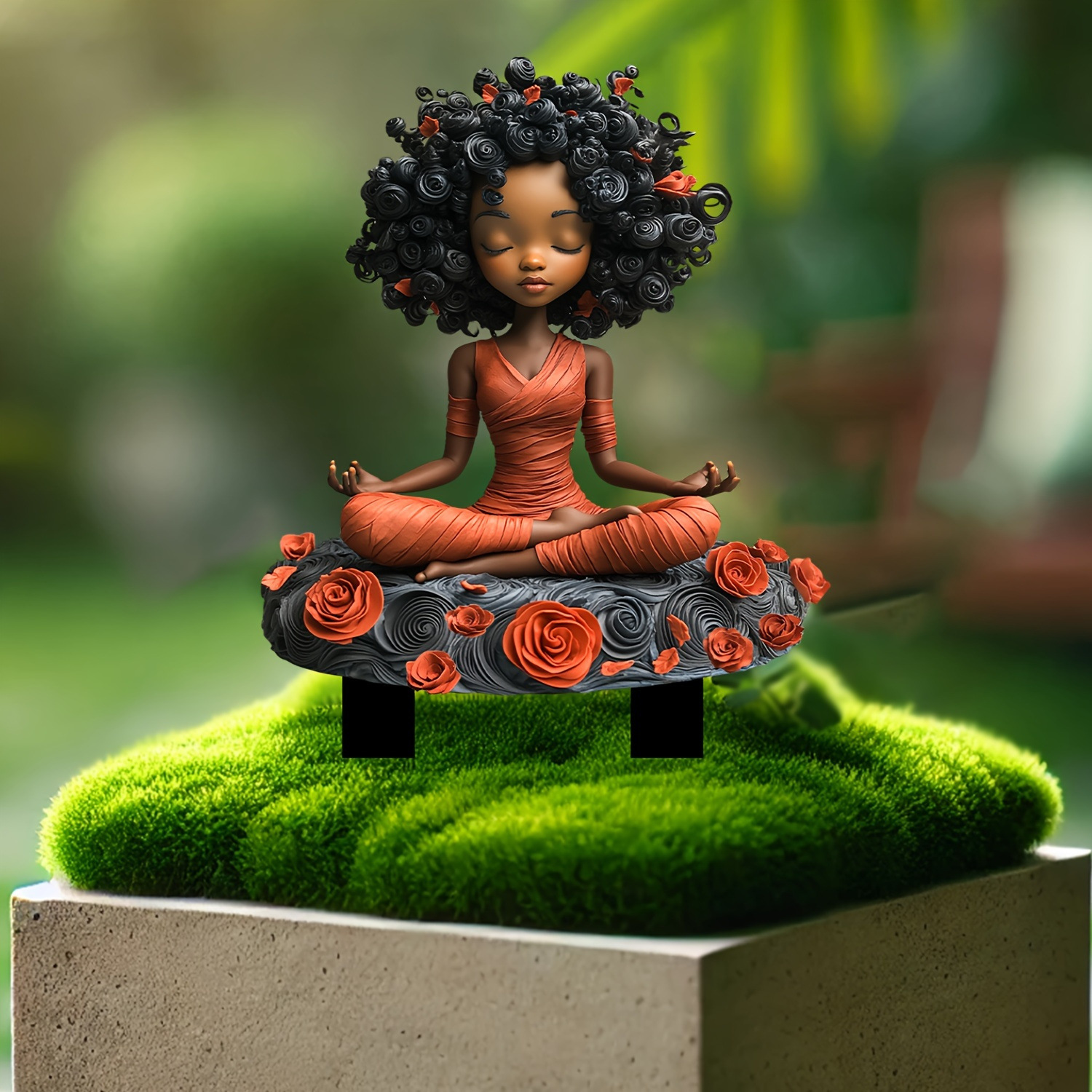 ヨガの瞑想版の赤い服の少女の家庭の花園の装飾の2dアクリルの花園の挿し込みの標識の田園の挿し込みの道具