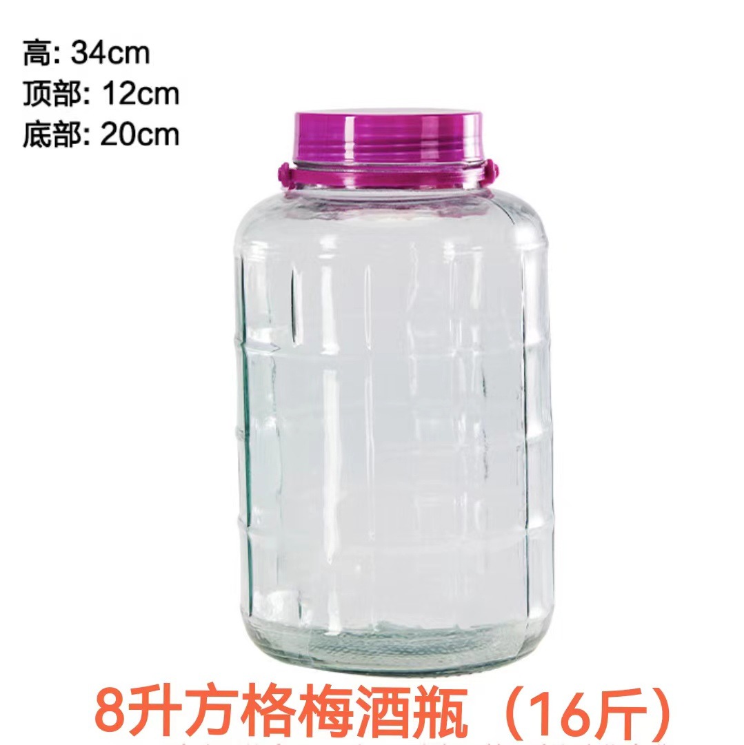 卸売り8リットルの厚いガラス缶密封方眼瓶泡酒壇キムチ壇楊梅酒瓶方眼梅酒瓶