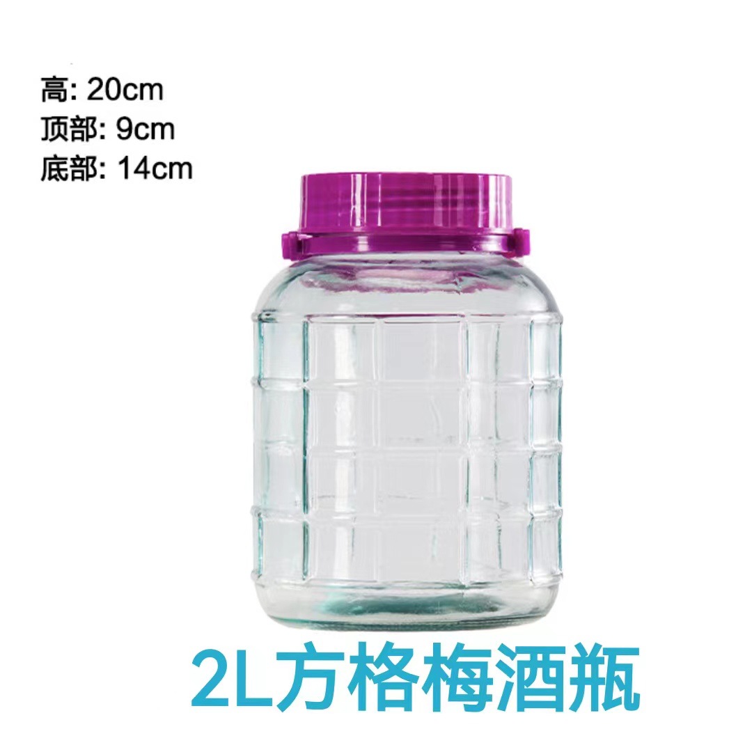 卸売り2リットルの厚いガラス缶密封方眼瓶泡酒壇キムチ壇楊梅酒瓶方眼梅酒瓶